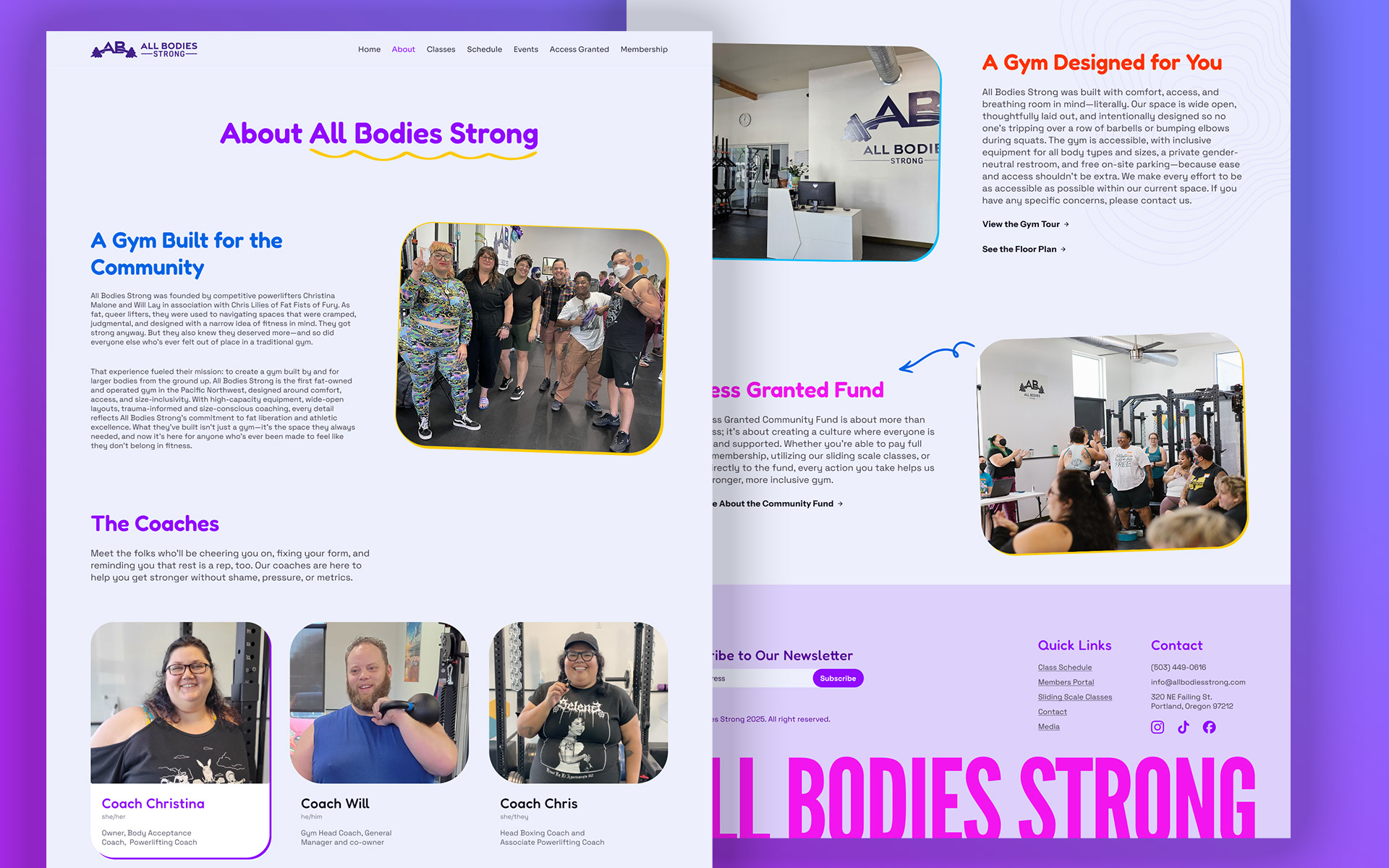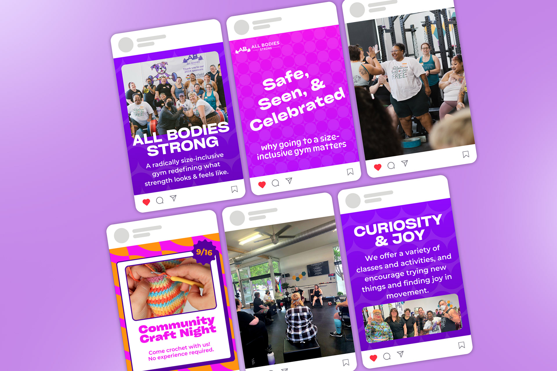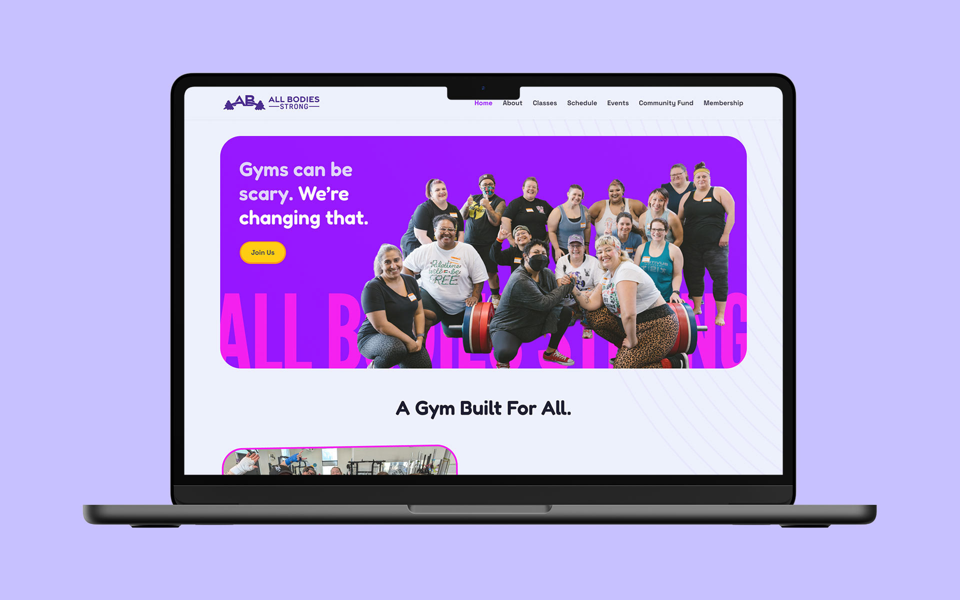 All Bodies Strong had carved out something revolutionary: a gym full of big bodies, big laughs, and big ideas—a space where fat folks could go to celebrate their bodies, rather than try to shrink them. After their first year, they realized they needed to focus their brand and have a cohesive message, voice, and identity. They needed a creative partner who understood that their mission isn't just inclusion—it's celebration of larger bodies finding movement in a positive light.